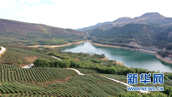 航拍的冬日都勻螺螄殼茶山一景。新華網(wǎng) 周遠鋼 攝