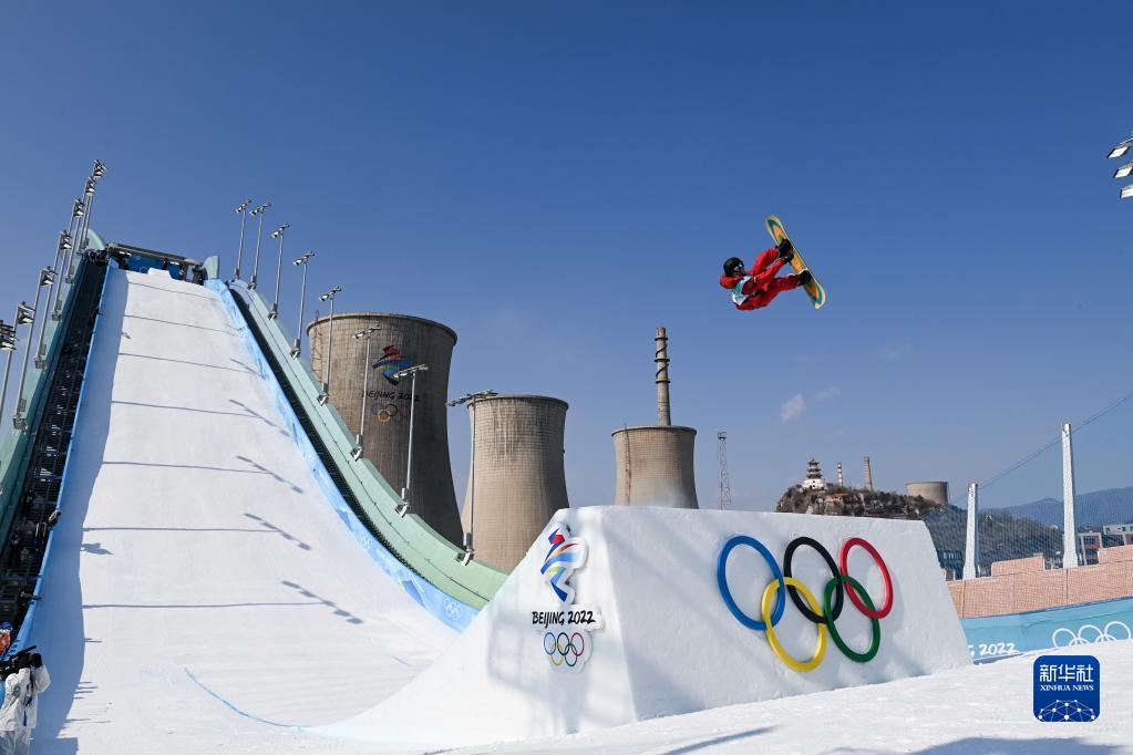 北京2022年冬奧會單板滑雪男子大跳臺決賽在北京首鋼滑雪大跳臺舉行。這是加拿大選手達西·夏普在比賽中(2月15日攝)。新華社記者 許暢 攝