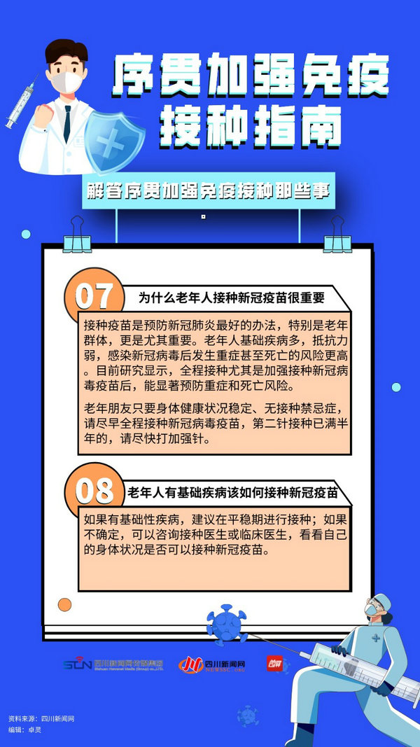 按照國家統(tǒng)一部署,四川已啟動序貫加強(qiáng)免疫接種,為筑牢免疫屏障提供了新的手段,為群眾開展加強(qiáng)免疫提供了更多選擇!近期,國內(nèi)疫情多發(fā)頻發(fā),防控形勢復(fù)雜嚴(yán)峻。作為預(yù)防新冠肺炎最好的辦法,接種新冠疫苗顯得特別重要,尤其是針對老年群體。