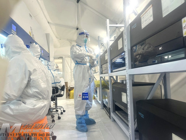 綿陽核酸檢測應(yīng)急隊(duì)在實(shí)驗(yàn)室內(nèi)緊張工作(受訪者供圖)
