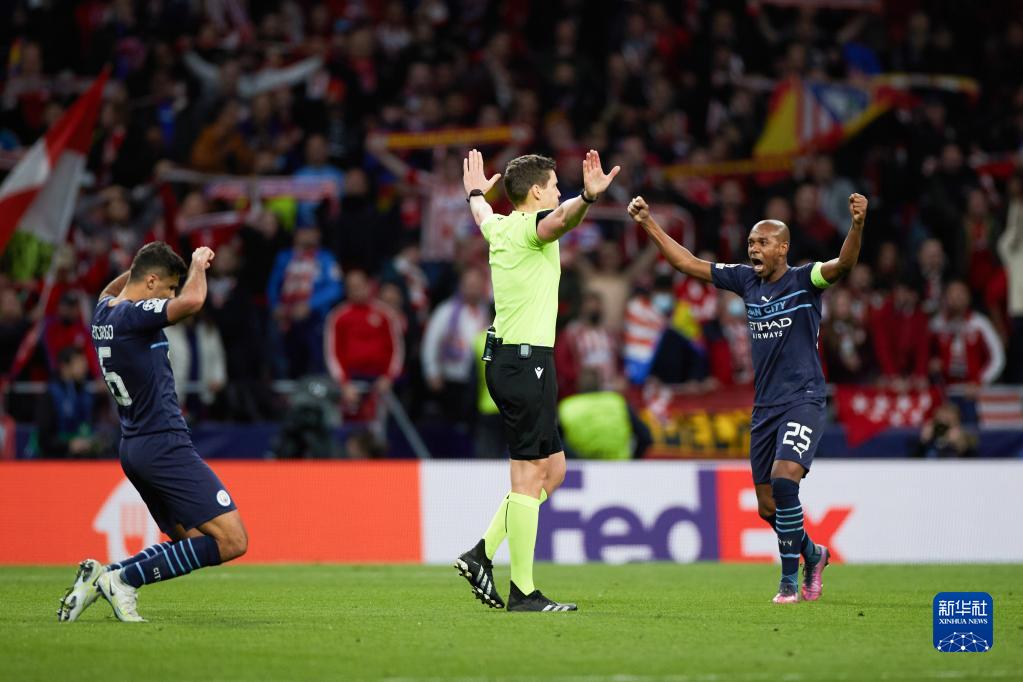 當(dāng)日,在2021-2022賽季歐洲足球冠軍聯(lián)賽四分之一決賽次回合比賽中,英超曼徹斯特城隊(duì)客場(chǎng)以0比0戰(zhàn)平西甲馬德里競(jìng)技隊(duì),以兩回合1比0的總比分晉級(jí)四強(qiáng)。