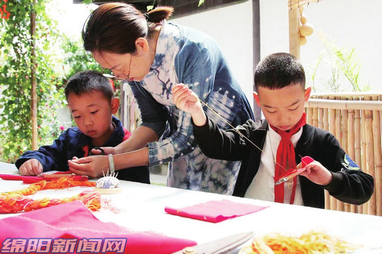 為支持媽媽抗疫,姐弟倆和班上部分同學(xué)跟著繡娘學(xué)習(xí)蜀繡,制作香囊。“媽媽在上海方艙醫(yī)院工作,我想把自己制作的香囊送給媽媽,希望她早點(diǎn)平安回家!”