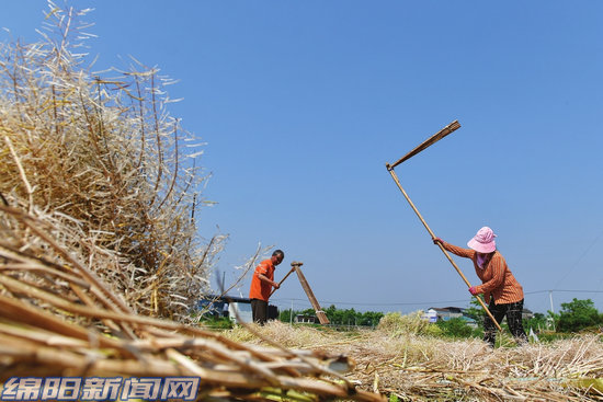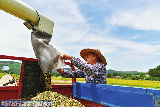 安州、游仙、梓潼等地油菜種植區(qū),油菜籽迎來大豐收。藍(lán)天下,密密麻麻的菜籽角結(jié)實(shí)飽滿,村民穿梭在地頭田間,連枷、鐮刀、收割機(jī)齊上陣,豐收的喜悅掛滿曬黑的臉龐,與大片田地交織成夏日最動(dòng)人的鄉(xiāng)村畫卷。