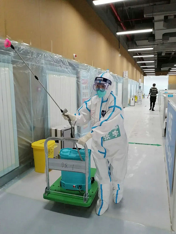 方艙醫(yī)院里人手緊缺,周洋承擔(dān)了許多“體力活”,他化身為“消殺衛(wèi)士”,分時段對方艙醫(yī)院進行消毒,不放過任何一個盲區(qū),一趟“消殺”下來,周洋經(jīng)常汗流浹背。“也不覺得辛苦,因為這就是我的本職工作,再加上患者也讓我們心里很溫暖。”周洋介紹,在方艙醫(yī)院,有一位患者每次都用90度鞠躬來向醫(yī)務(wù)人員表達感謝,這種“雙向奔赴”讓他和同事們倍感溫暖。