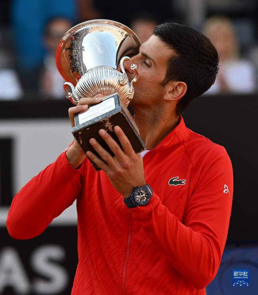 5月15日,焦科維奇在頒獎(jiǎng)儀式上親吻冠軍獎(jiǎng)杯。新華社發(fā)