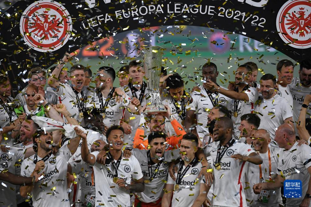 當(dāng)日,在西班牙塞維利亞舉行的2021-2022賽季歐羅巴聯(lián)賽決賽中,德甲法蘭克福隊與蘇超格拉斯哥流浪者隊在常規(guī)時間和加時賽中戰(zhàn)成1比1。最終通過點球大戰(zhàn),法蘭克福隊以總比分6比5獲勝,奪得冠軍。