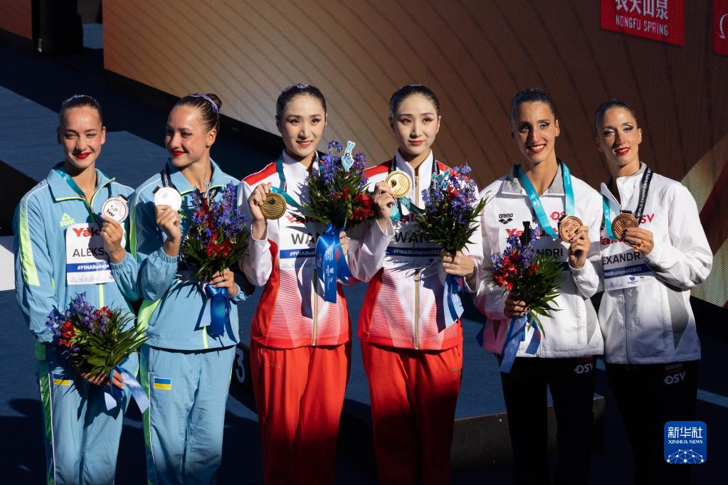 本屆世錦賽花樣游泳雙人技術(shù)自選決賽成為“雙胞胎大戰(zhàn)”,最終奪牌的三對(duì)選手均為雙胞胎。在預(yù)賽中穩(wěn)居第一的中國(guó)姐妹王柳懿/王芊懿繼續(xù)保持高水平發(fā)揮,以93.7536分奪冠。烏克蘭阿列克謝娃姐妹摘銀,奧地利的亞歷山德里姐妹獲得季軍。