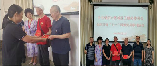 7月1日,區(qū)衛(wèi)健局黨委委員、衛(wèi)生執(zhí)法監(jiān)督大隊(duì)大隊(duì)長郭江華同志一行來到綿陽市骨科醫(yī)院行政辦公區(qū),看望慰問我院邱正陽、許瑞亭兩位困難老黨員,并向他們致以最親切的問候。郭委員感謝他們?cè)?jīng)為衛(wèi)生健康事業(yè)做出的貢獻(xiàn),希望能繼續(xù)發(fā)揮黨員先鋒模范作用,保持積極樂觀的心態(tài)為黨奉獻(xiàn)余熱,并代表局黨委向他們送上了慰問金。(梁維維、葉金鳳、孫麗莎、劉雨蕊 文/圖)