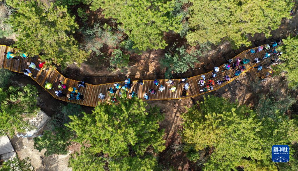 7月31日,徒步登山愛好者在比賽中(無人機(jī)照片)。