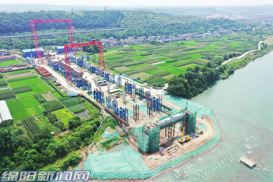 科技城涪江大橋項目位于科技城大道二期涪城區(qū)青義鎮(zhèn)和游仙區(qū)石馬鎮(zhèn)交界位置,橫跨涪江。建設(shè)內(nèi)容包含跨涪江特大橋一座、互通立交一座、涪城區(qū)和游仙區(qū)兩側(cè)引橋及其他附屬配套設(shè)施,橋梁全長約1.1公里。已完成橋梁樁基及主橋墩施工,正在按計劃推進施工。