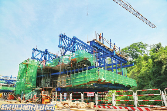 東西第二干道工程項目貫穿涪城區(qū)、科技城新區(qū)、科學(xué)城、游仙區(qū),道路設(shè)計全長約8.9公里。高水中街拓寬段已完成,清水灣大橋已完成下部結(jié)構(gòu)和上部結(jié)構(gòu)施工,正在進行主橋箱梁施工。老龍山隧道已掘進483米,西山北路擋墻段已開工。