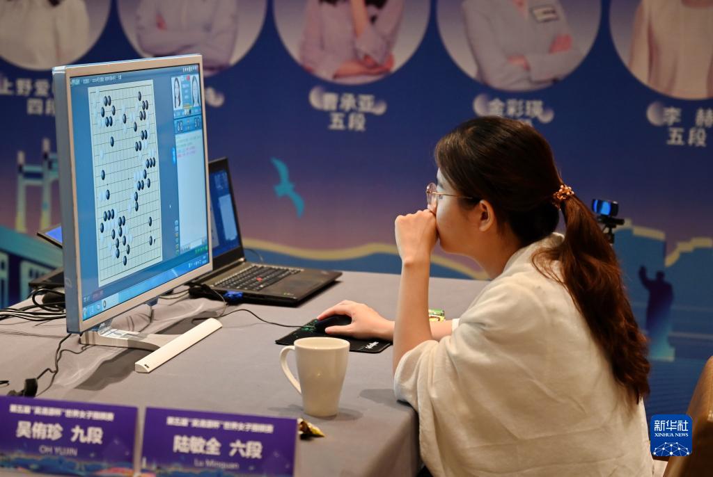 8月1日,中國(guó)棋手陸敏全六段在對(duì)陣韓國(guó)棋手吳侑珍九段的比賽中。