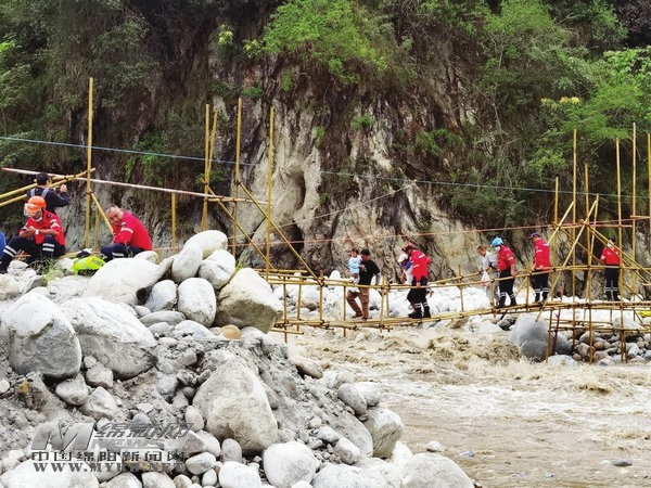 另據(jù)綿陽神鷹紅十字救援中心隊員龔倩云介紹,他們另一組隊員在沿途配合武警部隊搭建鋼管橋,搶通臨時道路,運送水和食物等,保障被轉移出來的群眾在安全通行的同時有吃的喝的。