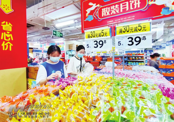 在該超市的熟食專區(qū),記者還發(fā)現(xiàn)了價(jià)格實(shí)惠的手工月餅銷售點(diǎn),一個(gè)個(gè)新鮮出爐的現(xiàn)烤月餅,散發(fā)著濃濃的香味,吸引消費(fèi)者紛紛品嘗購(gòu)買。