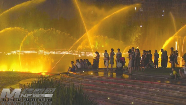 《沒有共產(chǎn)黨就沒有新中國》《紅星歌》等一首首經(jīng)典紅歌相繼播放,噴泉依照歌曲節(jié)奏和旋律編排,水柱緩緩升起并隨著歌曲節(jié)奏,不斷變換。五彩繽紛的燈光隨著變幻不斷的薄薄水霧,呈現(xiàn)出一場美妙的視覺盛宴。一首首耳熟能詳、激人奮進(jìn)的優(yōu)秀紅色歌曲,盡情抒發(fā)了愛國、愛黨的情懷和贊美幸福生活的美好心聲,美妙絕倫、熱烈的氣氛感染了在場的每一位市民和游客。