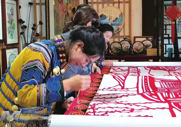 綿陽新聞網(wǎng)(張俊華綿報(bào)融媒記者趙燁杜亞菲文/圖)近日,江油市同涼山州布拖縣聯(lián)合開展的“喜迎二十大·同繡一幅畫”系列活動在青蓮鎮(zhèn)粉竹樓舉行?;顒又?,8名江油繡娘和12名布拖繡娘共同創(chuàng)作了一幅名為《喜迎二十大布江心向黨》的作品。該作品長3.8米,寬1.4米,融合蜀繡和彝繡兩種非遺手藝,以中共一大召開地“南湖紅船”為元素,歷時(shí)101天創(chuàng)作而成。