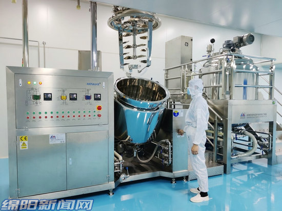 在四川康養(yǎng)健生物科技有限公司,工人正在安裝調(diào)試設(shè)備