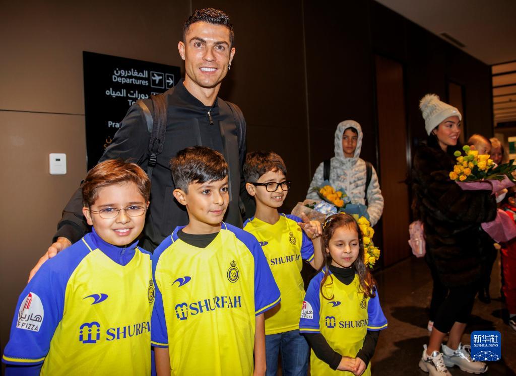 1月2日,克·羅納爾多抵達(dá)利雅得國際機場后與小球迷合影。新華社/美聯(lián)