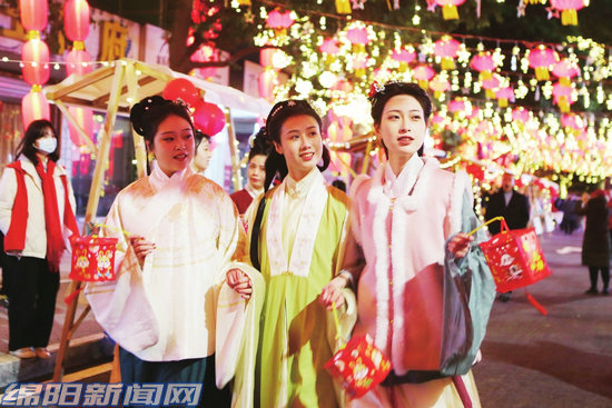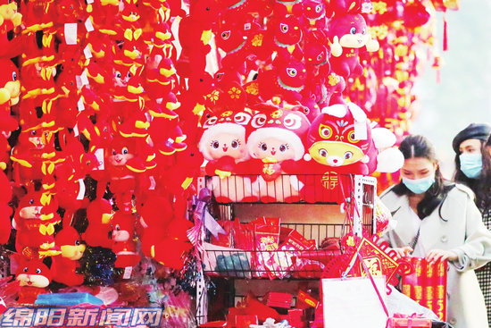 1月13日,“綿州記憶”特色商業(yè)街區(qū)正式開街,吸引市民逛街賞景。城區(qū)各公園裝扮一新,洋溢著喜慶祥和的節(jié)日氣氛。在市場、超市,琳瑯滿目的兔年年貨上架,吸引市民選購。各地還紛紛開展迎新春文化活動,為市民寫春聯(lián)、送福字,各種民俗活動更是人氣滿滿。