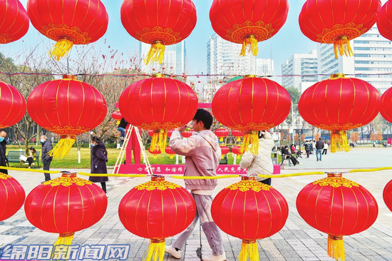 大紅燈籠將城區(qū)街道裝扮得喜氣洋洋