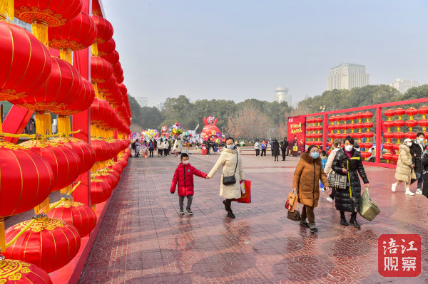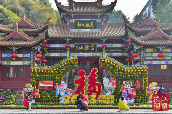 1月12日,記者在綿陽城區(qū)人民公園、西山公園、富樂山公園、南山公園看到,裝扮一新的公園洋溢著喜慶祥和的節(jié)日氣氛,除了“玉兔”迎春的花卉造型,還有數(shù)萬盞大紅燈籠,各種鮮花將公園裝點(diǎn)得喜氣洋洋,新春的氛圍越來越濃厚。