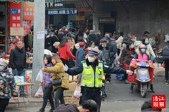上午8點10分,何維和同事們來到魏城鎮(zhèn)魏柏街農(nóng)貿(mào)市場路口,這是魏城場鎮(zhèn)的一條主要街道。農(nóng)貿(mào)市場門前,前來趕集、購置年貨的鄉(xiāng)親們絡(luò)繹不絕,馬路上,貨運車輛與過境車輛相較平日翻了一番,為保障群眾出行安全有序,何維和同事們一頭扎進(jìn)車水馬龍中,用手勢為車輛引道,用哨聲護(hù)百姓出行。