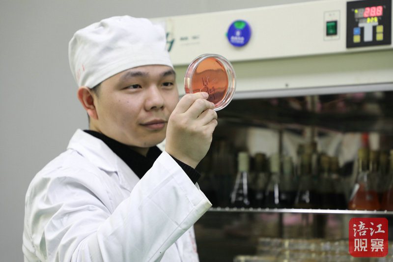 檢驗成品、仔細比對、記錄數(shù)據(jù)……上午9時,黃軍與往常一樣換上工作服、戴好工作帽,開始認真檢驗剛剛下線的復(fù)方板藍根顆粒,桌面上擺滿了瓶瓶罐罐和各種檢測儀器、工具。他目前在微生物室,每天檢驗原輔料包材和成品四五十個批次。
