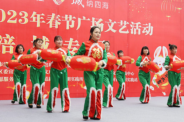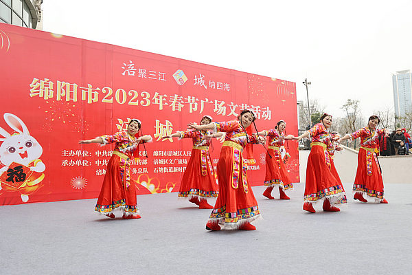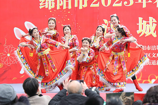 1月25日,大年初四,在綿陽(yáng)涪城區(qū)西河路社區(qū)陽(yáng)光曼哈頓廣場(chǎng),2023年春節(jié)廣場(chǎng)文藝演出涪城專場(chǎng)走進(jìn)社區(qū)。來(lái)自古井社區(qū)、南山社區(qū)、御營(yíng)社區(qū)、紅星社區(qū)、西河路社區(qū)等社區(qū)居民歡聚一堂,為轄區(qū)居民送上了“文化大餐”,現(xiàn)場(chǎng)居民大聯(lián)歡,熱熱鬧鬧過(guò)新年。