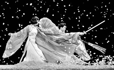 與第一輪演出相比,《石評(píng)梅》進(jìn)行了部分修改,如在第一場(chǎng)戲中增加了石評(píng)梅和余書豪的感情線索鋪墊,使得二人沖突更符合邏輯;在第二場(chǎng)戲中增加了石評(píng)梅和高君宇的心靈溝通,使二人的感情遞進(jìn)更富有層次,等等。綜觀第二輪演出,《石評(píng)梅》的故事性更強(qiáng),人物形象更為突出,性格更為飽滿,演員的表演更為成熟,包括唱腔細(xì)節(jié)的處理、傳統(tǒng)戲曲程式動(dòng)作與人物現(xiàn)代性的結(jié)合。