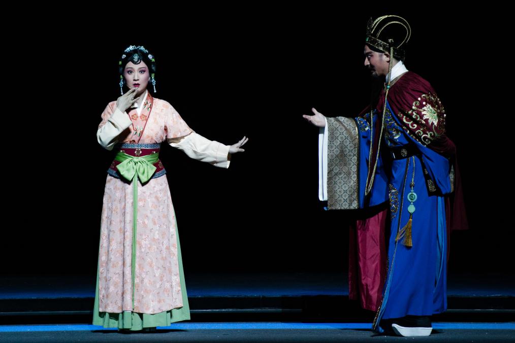 10月16日,湖北省戲曲藝術(shù)劇院的演員在表演黃梅戲《舞衣裳》。新華社發(fā)(杜子璇攝)