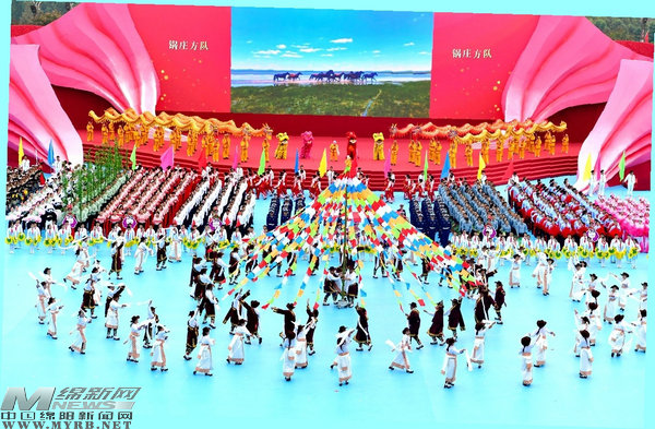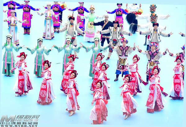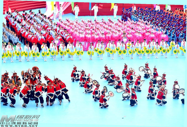 綿陽(yáng)新聞網(wǎng)訊 10月25日,北川羌族自治縣體育中心,八方賓朋齊聚在一起,現(xiàn)場(chǎng)儼然是一片歡樂(lè)的海洋。北川羌族自治縣成立20周年慶祝大會(huì)在這進(jìn)行,整個(gè)慶祝大會(huì)由2023名參演人員組成的20支巡游隊(duì)拉開(kāi)帷幕。隨后,歌舞《禹魂》《各族兒女手拉手》《北川人民感黨恩》《羌山兒女》、情景歌舞《英雄》《錦繡小康》等文化展演節(jié)目精彩上演(如圖),充分展示了各民族群眾共同團(tuán)結(jié)進(jìn)步、共同繁榮發(fā)展的輝煌業(yè)績(jī),讓觀眾感受到了北川深厚的禹羌文化底蘊(yùn)。
