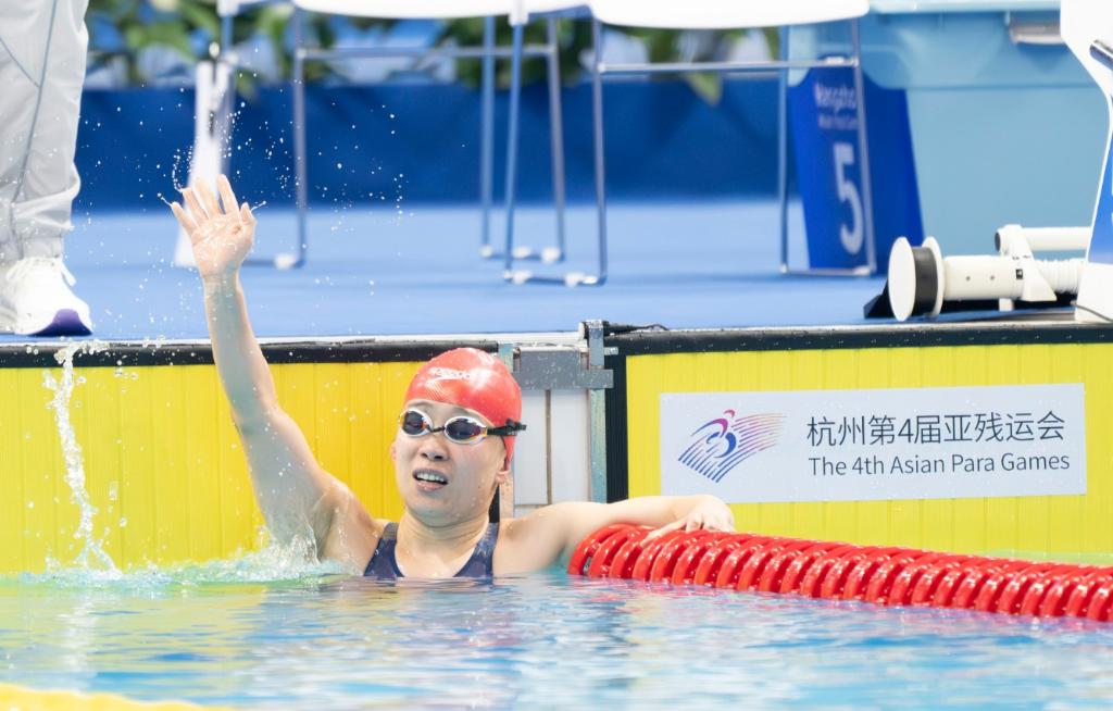 新華社哈爾濱10月25日電(記者張玥)“中國(guó)!劉玉!打破亞殘運(yùn)會(huì)紀(jì)錄!”24日,在杭州奧體中心游泳館內(nèi),歡呼聲、吶喊聲經(jīng)久不息。劉玉以2分55秒51的成績(jī)奪得女子200米自由泳S5級(jí)冠軍,并打破亞殘運(yùn)會(huì)紀(jì)錄,為中國(guó)代表團(tuán)再添一金。