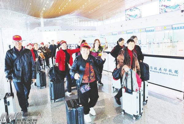 10月26日,德陽的游客從綿陽機(jī)場出發(fā)前往北京。