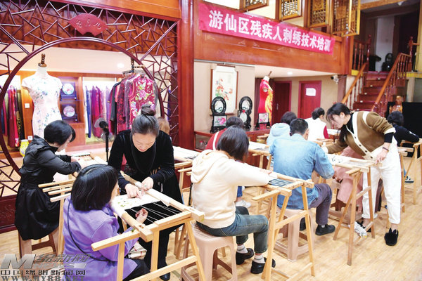 綿陽(yáng)新聞網(wǎng)訊 窗外細(xì)雨霏霏,室內(nèi)飛針走線,近日,在游仙區(qū)殘聯(lián)主辦的殘疾人刺繡技能免費(fèi)培訓(xùn)班上,10余位學(xué)員正在西蜀傳統(tǒng)刺繡工藝非遺傳承人周靜老師的精心指導(dǎo)下認(rèn)真學(xué)習(xí)蜀繡技法。