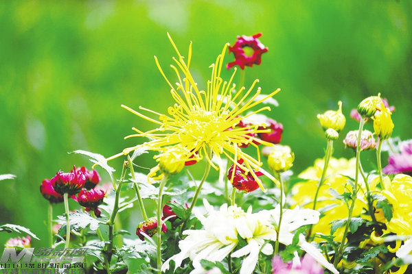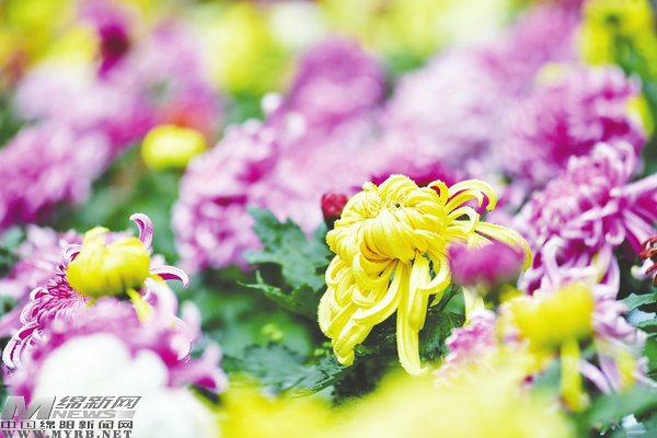 10月27日,在綿陽富樂山第36屆菊花展上,10萬余株各色菊花經(jīng)過了一夜秋雨洗禮后,顯得更加?jì)善G。本菊、大立菊、塔菊、懸崖菊、多頭菊……近500個(gè)品種的菊花爭(zhēng)奇斗艷,吸引眾多游客前來賞菊。
