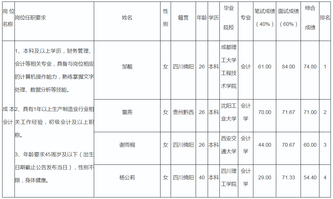 根據(jù)中國重汽集團綿陽專用汽車有限公司發(fā)布的招聘公告及招聘相關(guān)規(guī)定,經(jīng)筆試、面試程序,現(xiàn)將筆試、面試成績予以公示。