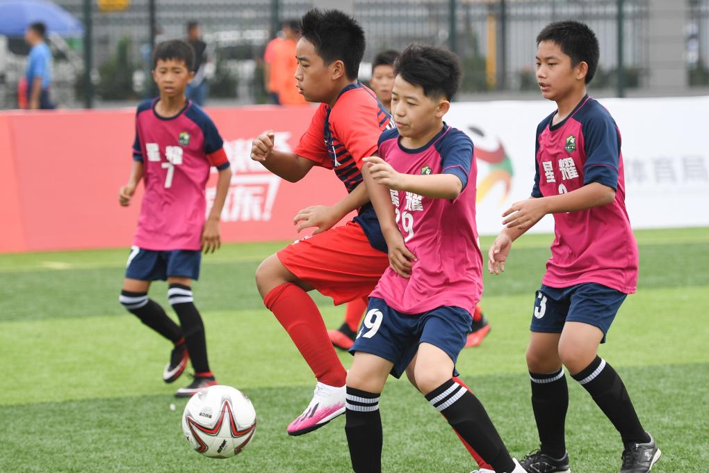 資料圖:2020年8月15日,2020年百隊杯足球賽U13男子組比賽進行中。新華社記者 鞠煥宗 攝