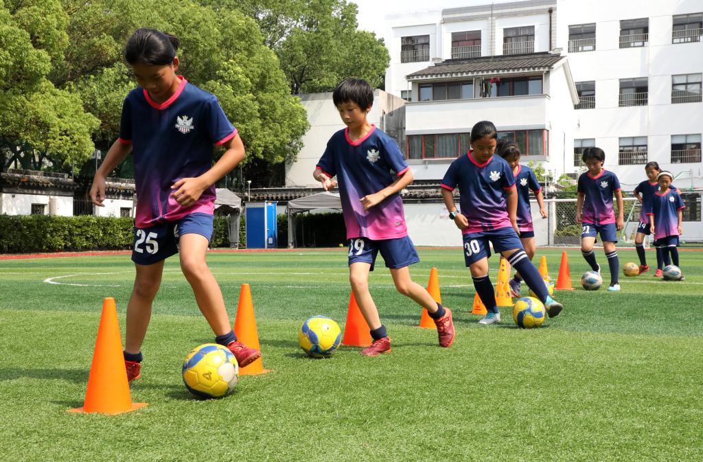 2022年7月15日,江蘇省蘇州市昇平實驗小學校的女足隊員在訓練中。新華社發(fā)(杭興微 攝)