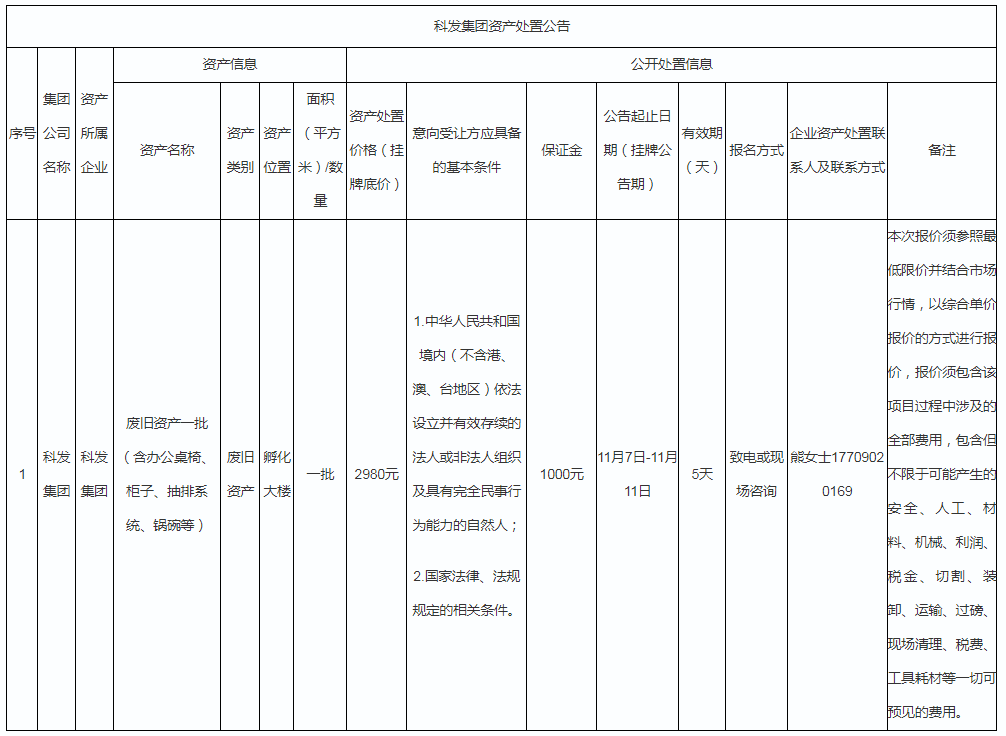 科發(fā)集團(tuán)資產(chǎn)處置公告