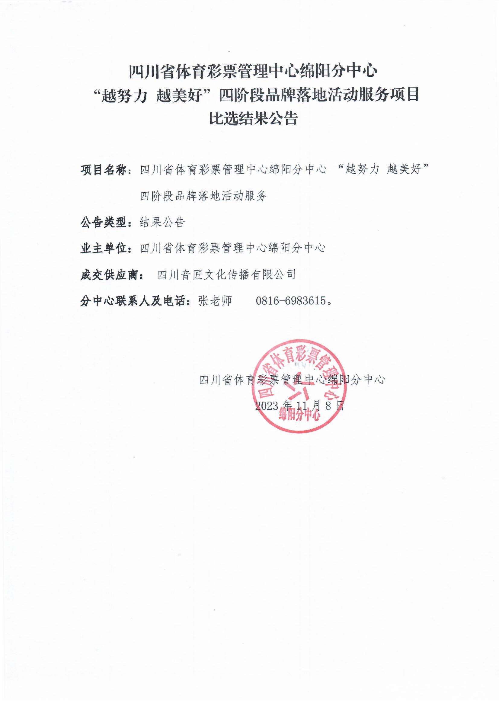 四川省體育彩票管理中心綿陽(yáng)分中心“越努力 越美好”四階段品牌落地活動(dòng)服務(wù)項(xiàng)目比選結(jié)果公告