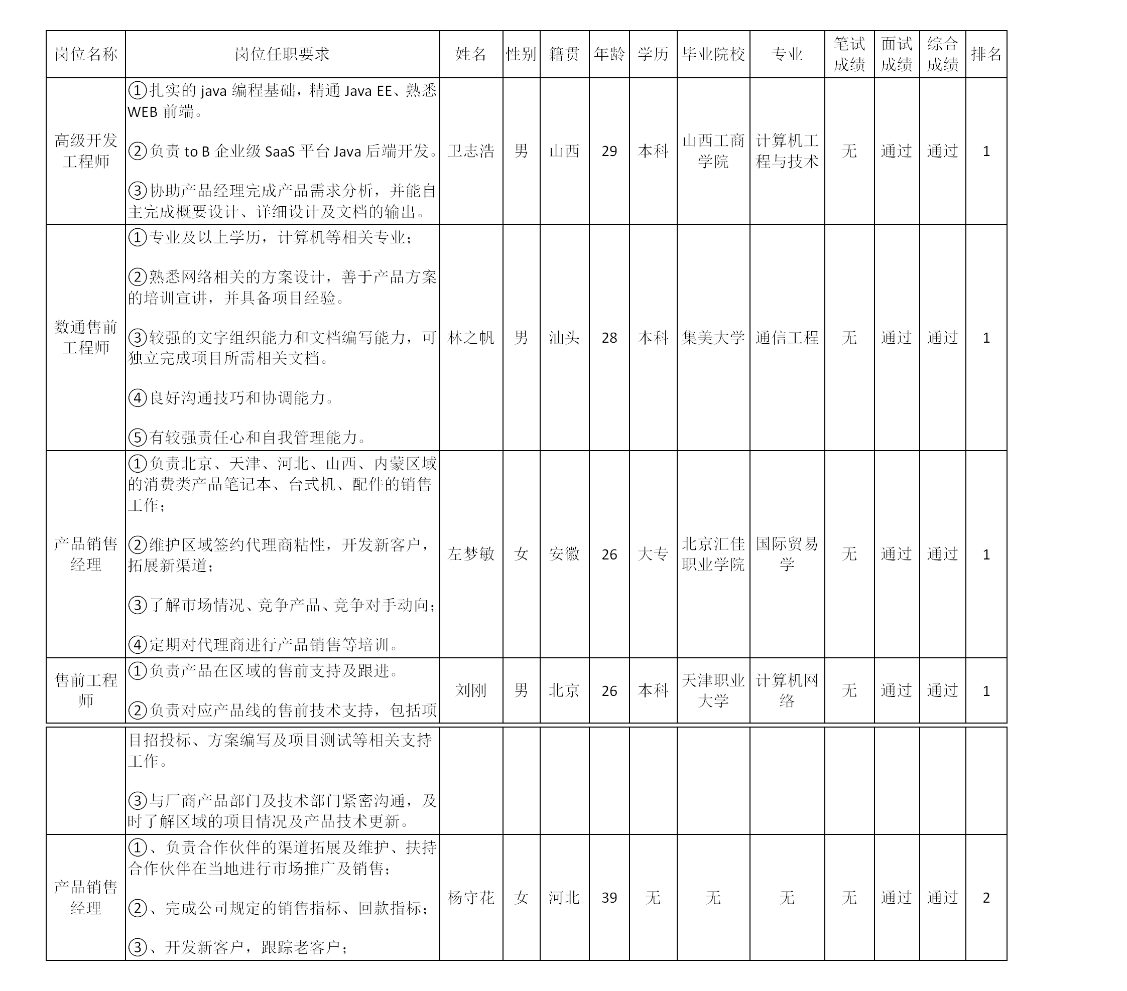 根據(jù)四川長虹佳華信息產(chǎn)品有限責(zé)任公司發(fā)布的招聘公告及招聘相關(guān)規(guī)定,經(jīng)筆試、面試等程序,現(xiàn)將筆試(面試)成績予以公示。