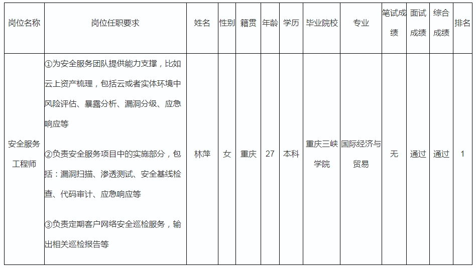 根據(jù)四川長虹佳華信息產(chǎn)品有限責(zé)任公司發(fā)布的招聘公告及招聘相關(guān)規(guī)定,經(jīng)筆試、面試等程序,現(xiàn)將筆試(面試)成績予以公示。