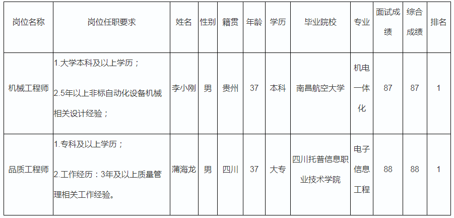 根據(jù)宜賓紅星電子有限公司發(fā)布的招聘公告及招聘相關(guān)規(guī)定,經(jīng)面試等程序,現(xiàn)將面試成績予以公示。