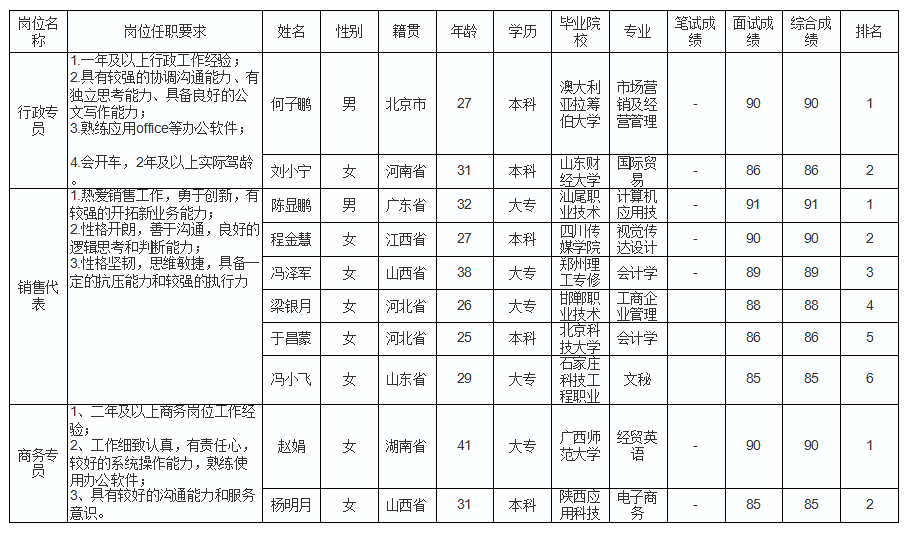 根據(jù)北京九洲科瑞科技有限公司發(fā)布的招聘公告及招聘相關(guān)規(guī)定,經(jīng)筆試、面試等程序,現(xiàn)將筆試(面試)成績(jī)予以公示。