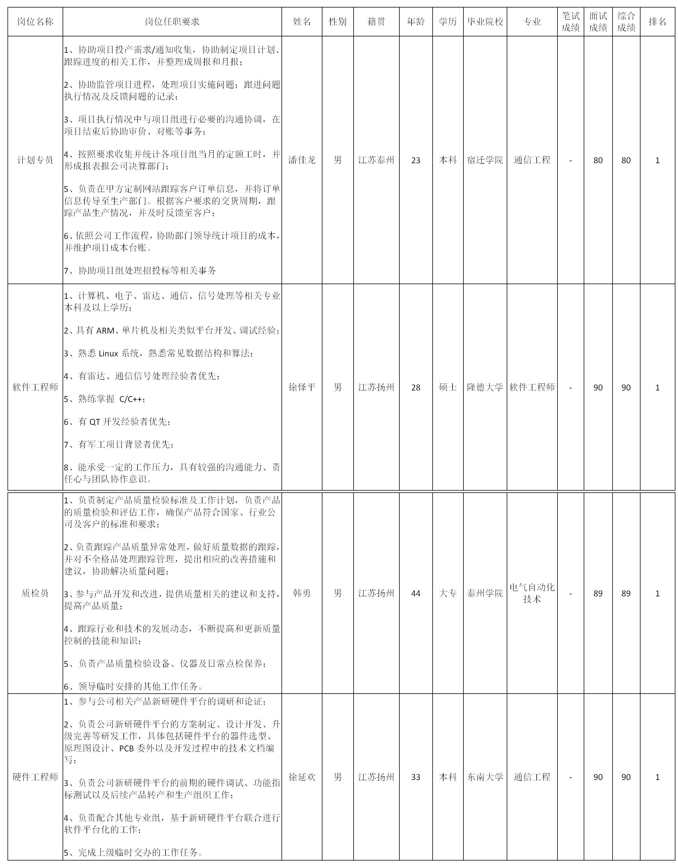 根據(jù)上海志良電子科技有限公司發(fā)布的招聘公告及招聘相關(guān)規(guī)定,經(jīng)筆試、面試等程序,現(xiàn)將筆試(面試)成績(jī)予以公示。