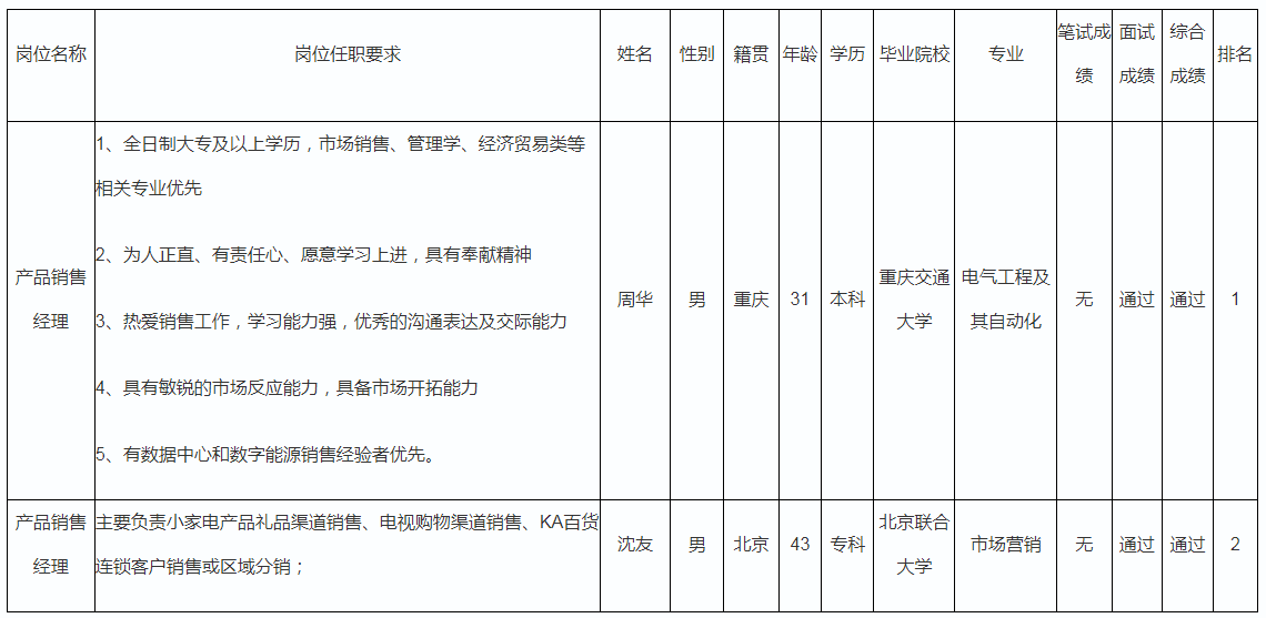 根據(jù)四川長(zhǎng)虹佳華信息產(chǎn)品有限責(zé)任公司發(fā)布的招聘公告及招聘相關(guān)規(guī)定,經(jīng)筆試、面試等程序,現(xiàn)將筆試(面試)成績(jī)予以公示。