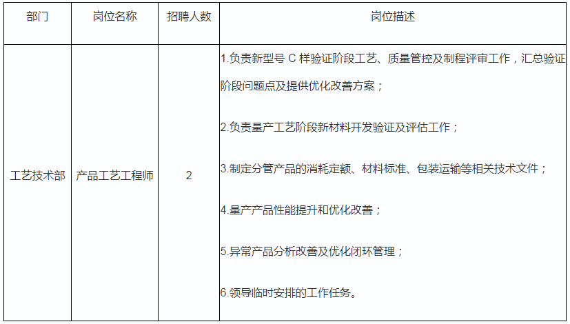 4. 工作經驗:5 年及以上鋰電行業(yè)經驗,了解電池材料體系的基本特征,熟悉制程流程和品質管控要點;有鋰電池開發(fā)經驗、圓柱行業(yè)經驗者優(yōu)先考慮。