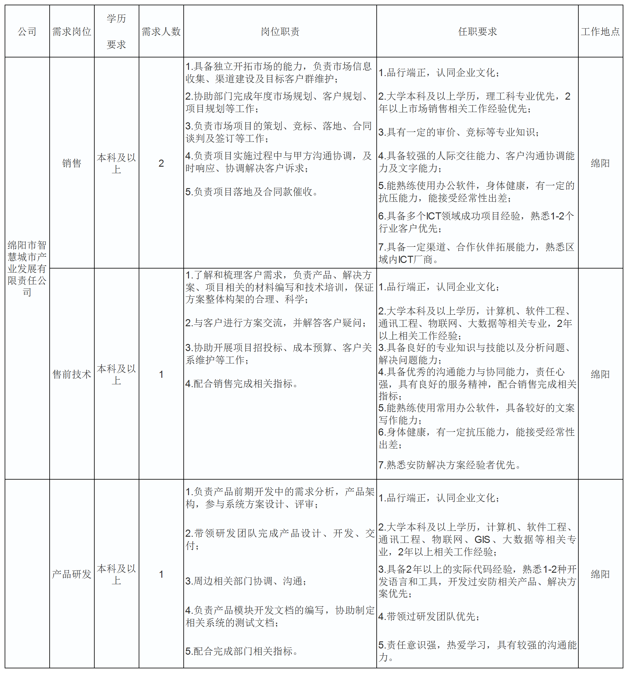 薪酬和福利待遇按照《綿陽市智慧城市產業(yè)發(fā)展有限責任公司薪酬管理辦法(試行)》有關規(guī)定執(zhí)行。