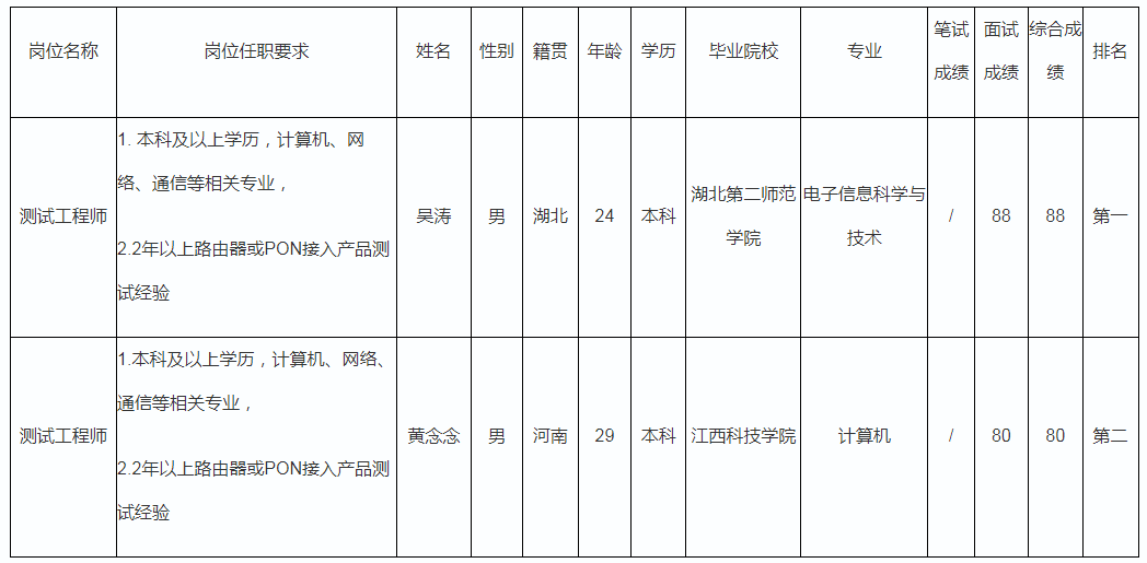 根據(jù)深圳市九洲電器有限公司發(fā)布的招聘公告及招聘相關(guān)規(guī)定,經(jīng)筆試、面試等程序,現(xiàn)將筆試(面試)成績予以公示。