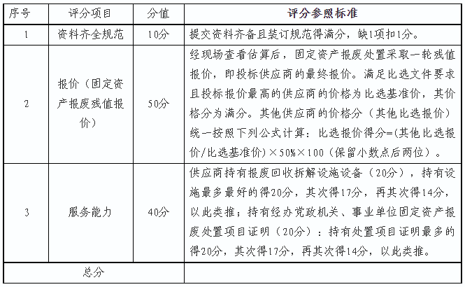 比選評審主要采用競爭性談判方式,以評審組人員評分為依據(jù),得分最高的為項目中標供應商,當場宣布結果。評分明細如下: